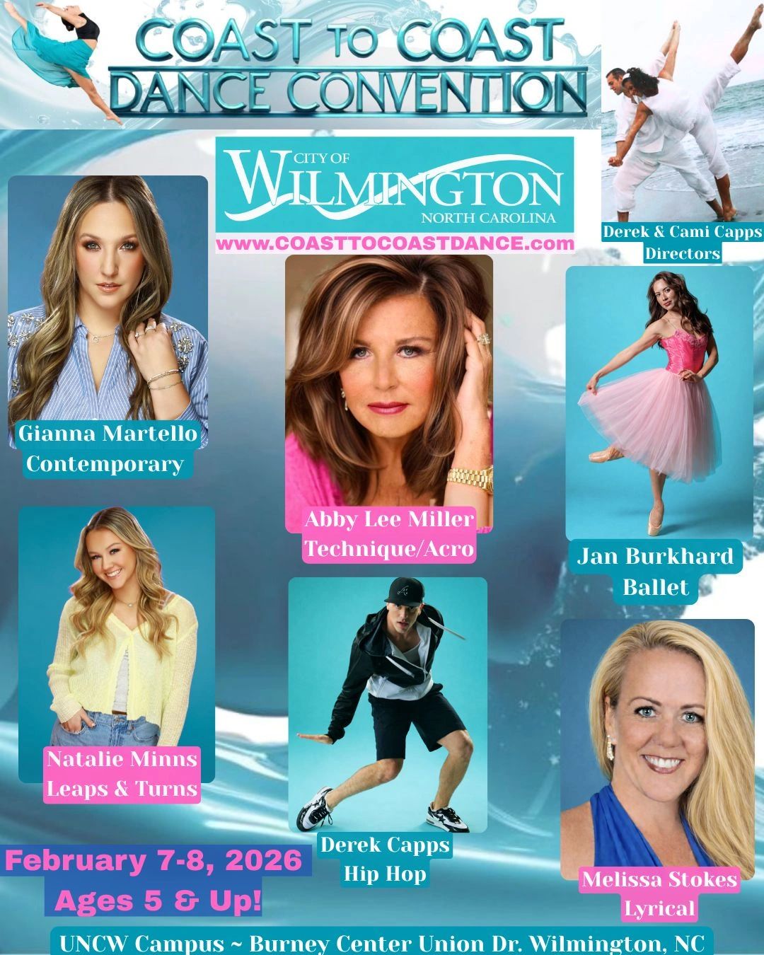 Derek Capps "Disney’s The Lion King" and Cami Capps (Co-Director of Coast to Coast Dance, Palisades Studio LA, and Founder of GAFA Wilmington, NC) have been performing and teaching dance for over 20 years. They have worked internationally in Hong Kong, the Philippines, China, Israel, and across the United States from Coast to Coast. Proud North Carolina natives and ECU Dance alumni, Derek and Cami spent 11 years performing & teaching in Los Angeles before relocating to Wilmington, NC after the Palisades fires impacted their home and Palisades Dance Studio. Through it all, they believe God is doing something new, and are thrilled to bring their West Coast experience back to the East Coast—uniting dancers from Coast to Coast!